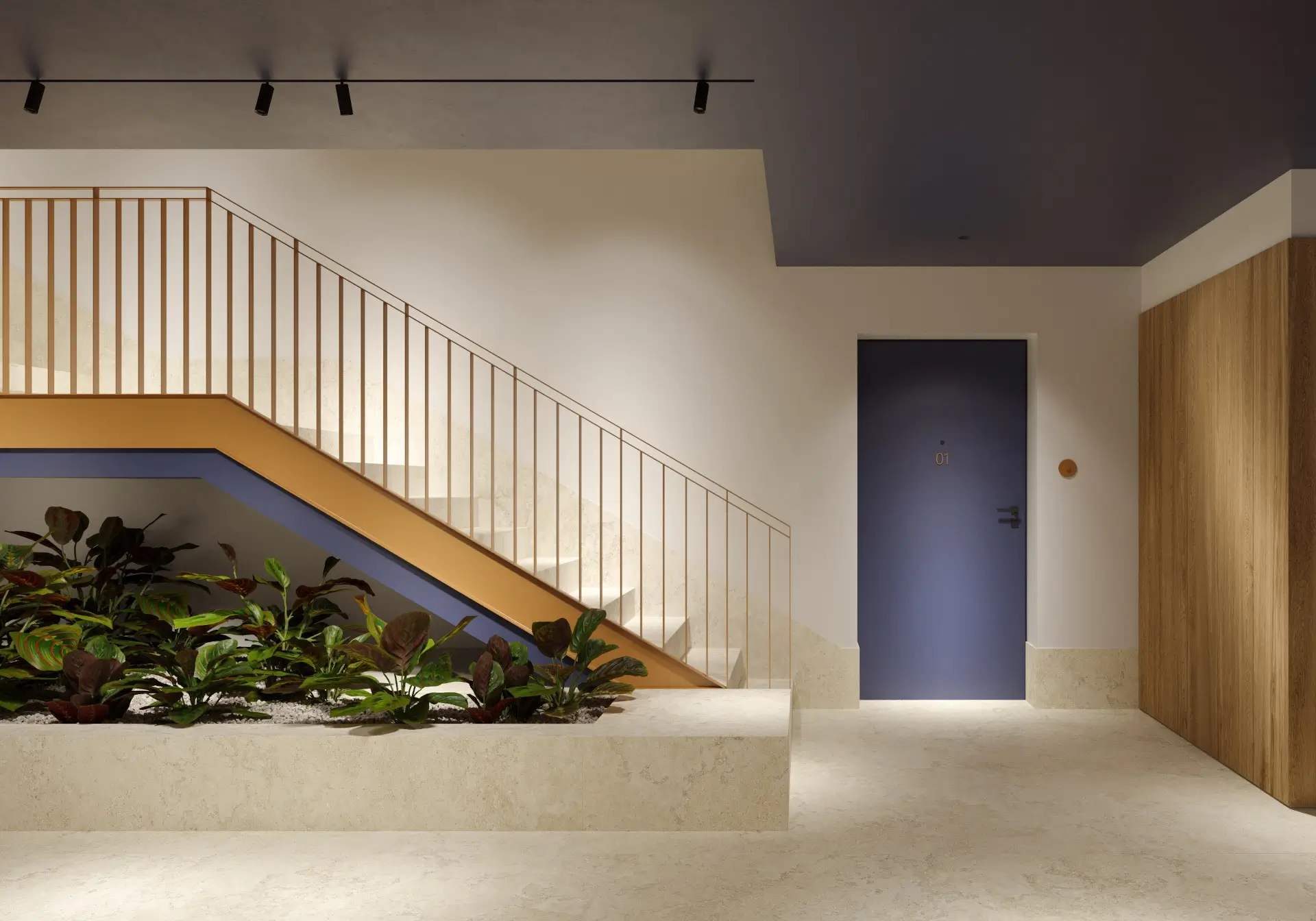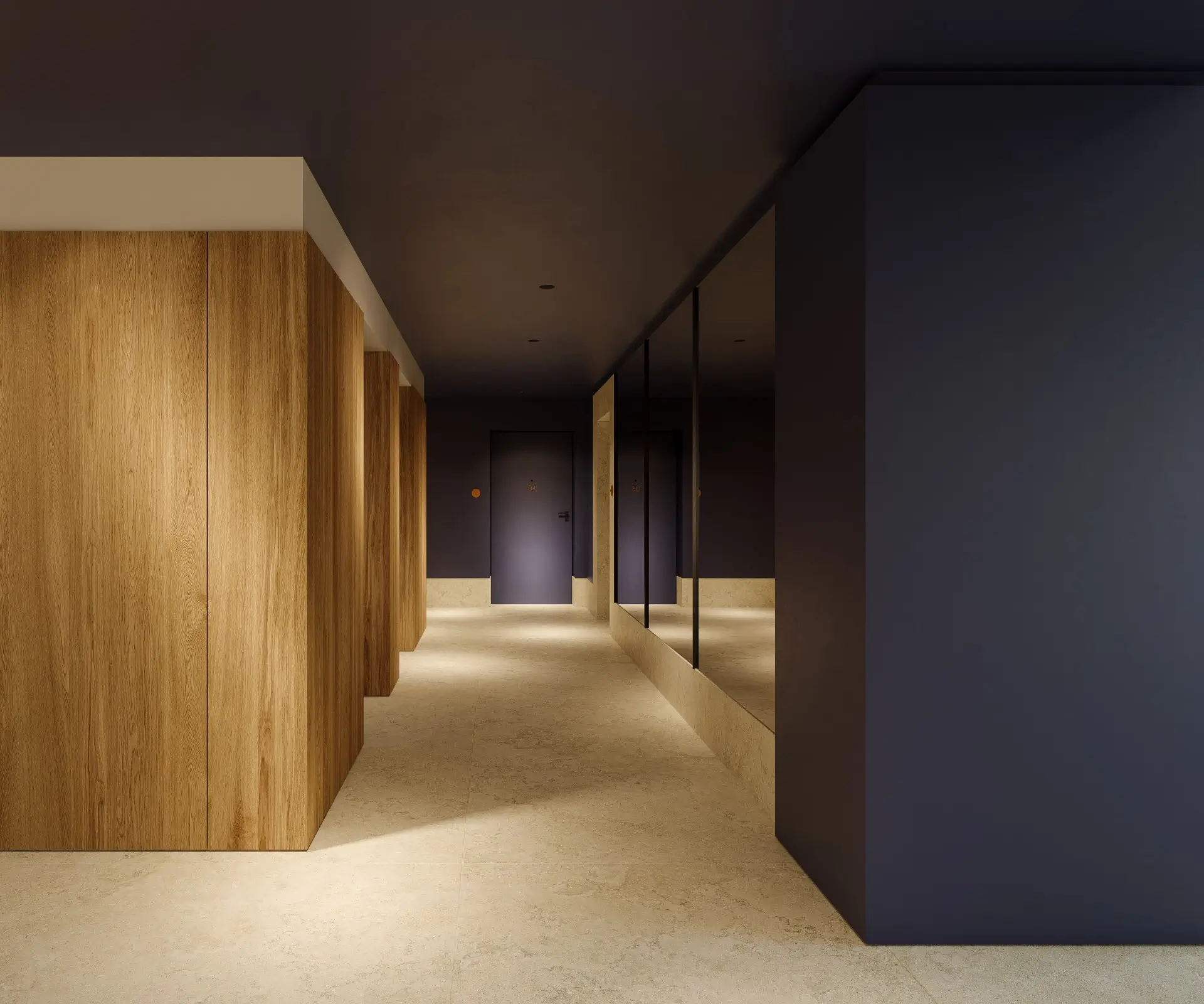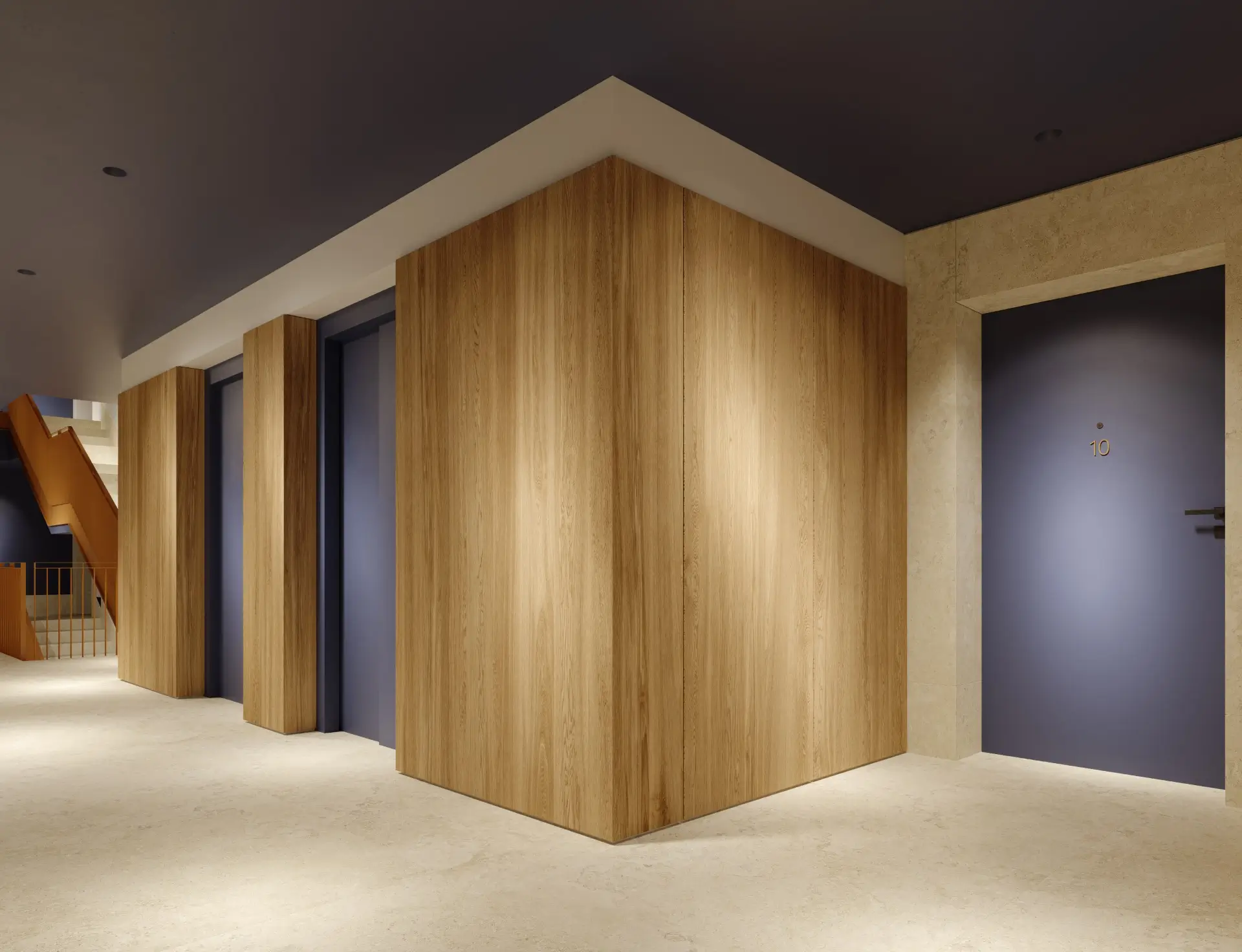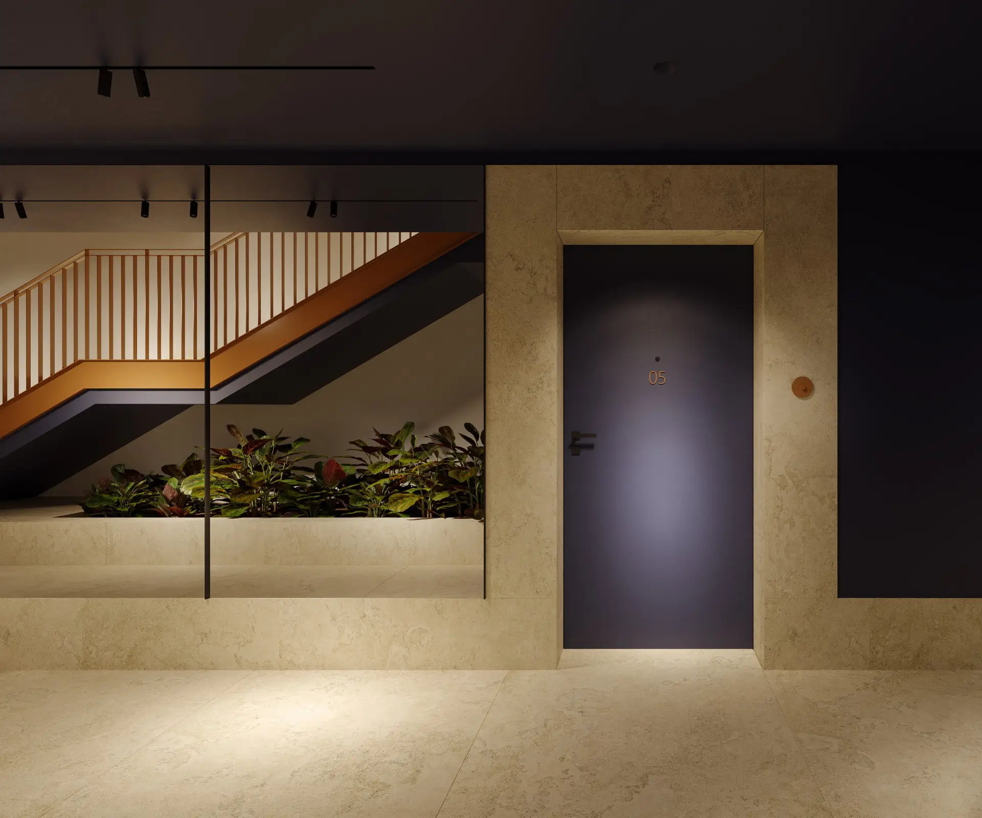 În interior, designul spațiilor comune semnat de Studio 1408 înțelege nevoia umană de funcționalitate și estetică: texturi naturale, spații fluide, tonuri calde și spații luminoase.